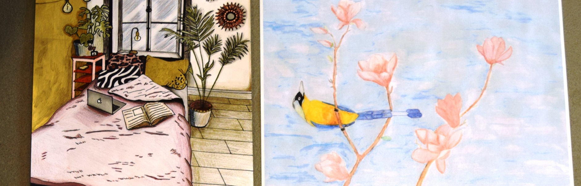 De vier prachtige tekeningen op de foto zijn afgelopen periode gemaakt tijdens de vakoverstijgende lessen tekenen. Na een periode van zeven weken schuiven alle 1e en 2e klassen van Aeres MBO Velp weer door naar een andere vakoverstijgende les. Op deze manier maken alle studenten kennis met fotografie, digitaal tekenen, werken met diverse gereedschappen en tijdens de tekenlessen werken met diverse tekenmaterialen.