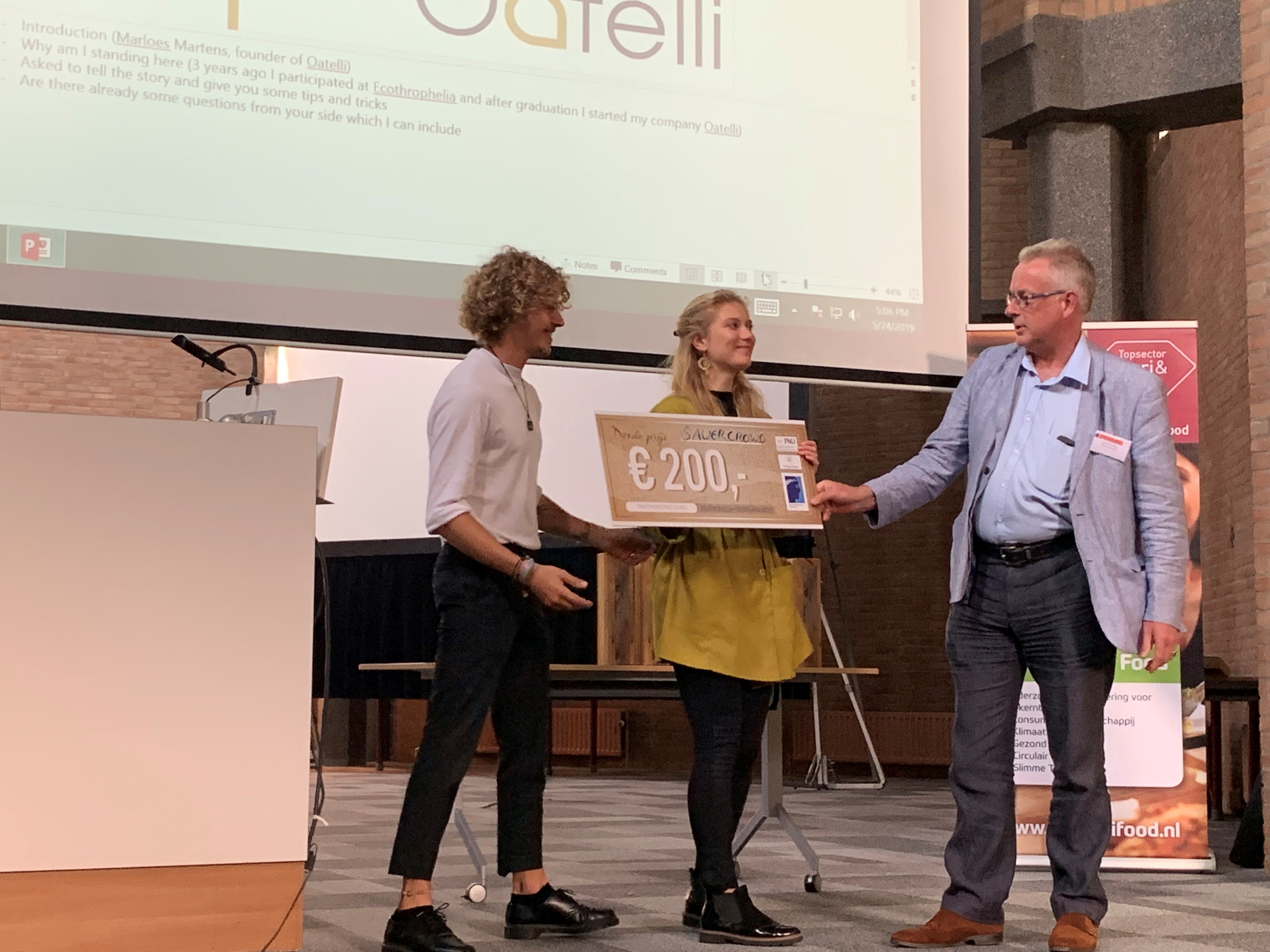 Claire en Moritz deden voor de eerste keer mee aan de Ecotrophelia challenge en belandden gelijk al op de derde plaats. Voor deze challenge moesten Claire en Moritz een gezond product ontwikkelen, die ook nog eens duurzaam kan worden geproduceerd. Hun businessidee ‘SauerCrowd’ viel duidelijk in de smaak bij de jury; zuurkool op de manier van Claire’s opa en oma, bio-active in plaats van gepasteuriseerd. Ook hebben ze aan hun zuurkool een moderne twist gegeven, zoals met appel en venkel. Hiermee hebben ze welverdiend een mooie geldprijs én coaching door een professional van FNLI gewonnen.