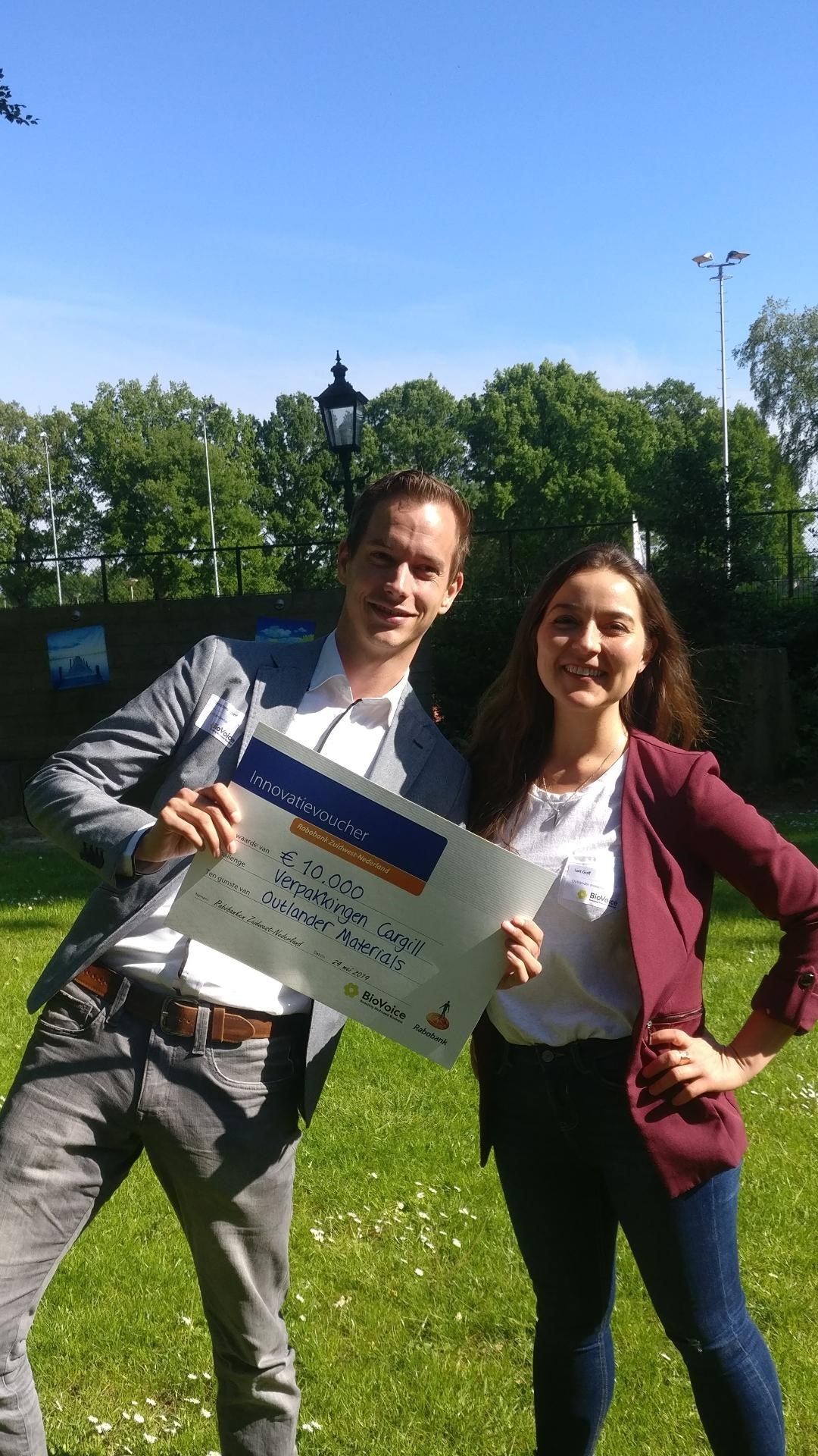 Studenten European Food Business van Aeres Hogeschool Almere zijn opnieuw in de prijzen gevallen in maar liefst twee challenges! Juriaan deed mee aan de BioVoice challenge en heeft daarmee de eerste prijs gewonnen. De bedoeling van de challenge was om een nieuw biobased product te bedenken. Er waren zeven verschillende challenges waaruit de deelnemers konden kiezen, allemaal met verschillende onderwerpen. Juriaan deed mee aan de challenge ‘Biologisch afbreekbare voedselverpakkingen’. Om een oplossing te bedenken is hij aan de slag gegaan met de onderzoeksvraag van één van de challengers, Cargill: ‘Hoe kunnen we het gebruik van biologisch afbreekbare voedselverpakkingen versneld opschalen?’. Juriaan is erin gedoken en heeft een product ontwikkeld waarmee je restwater van de bierindustrie kan valoriseren tot nieuwe verpakkingsmaterialen. De prijs waarmee Juriaan naar huis ging is een mooie check t.w.v. 10.000 euro!