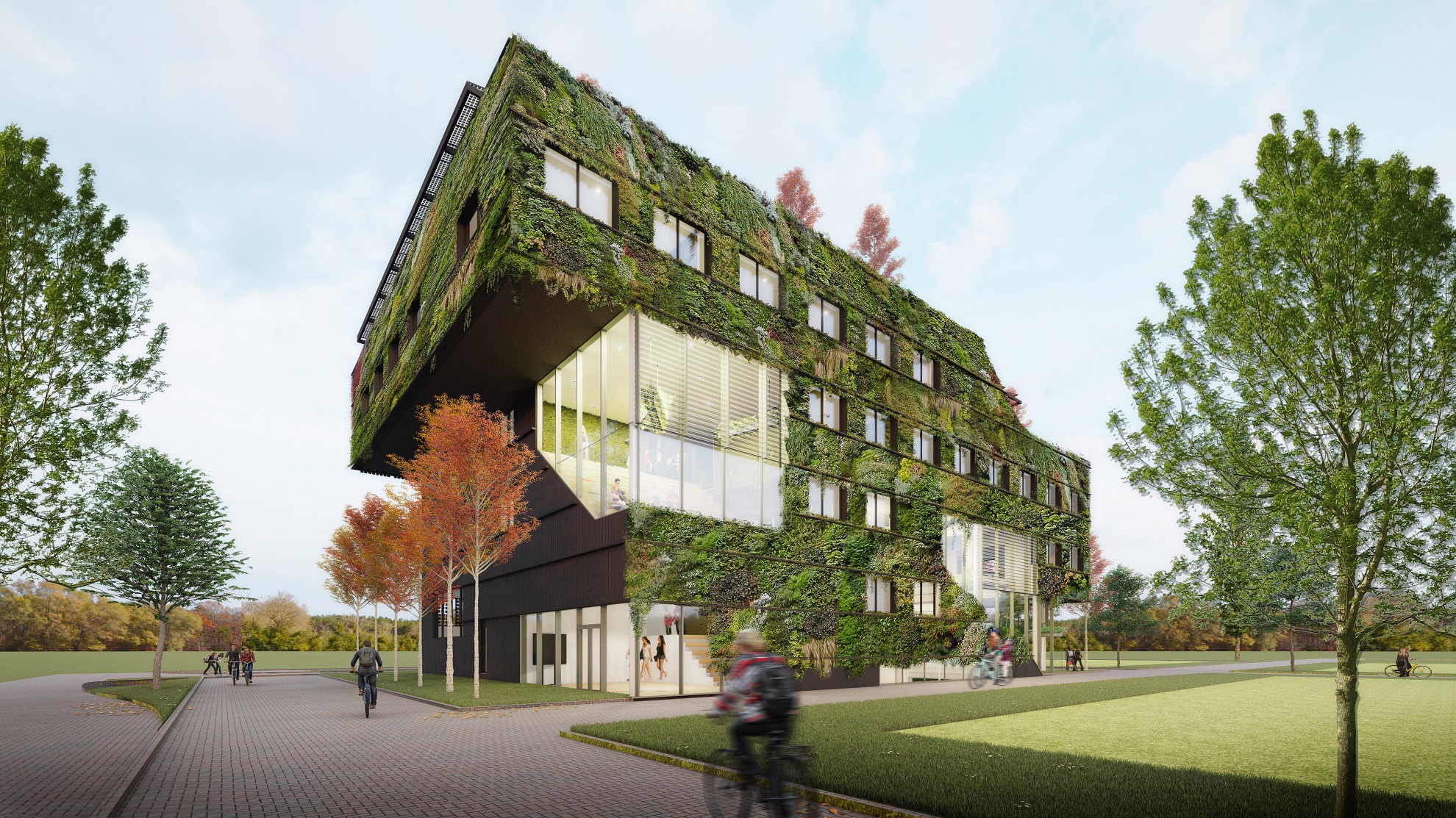 Dat groen en duurzaamheid de belangrijkste bouwstenen van het nieuwe hogeschoolgebouw zijn, is te zien aan slimme toepassingen in het ontwerp. Niet voor niets wordt Aeres Hogeschool Almere letterlijk en figuurlijk de groenste hogeschool van Nederland. Zo is de gevel vormgegeven als een zogenoemde smart skin; afhankelijk van de oriëntatie hebben de gevels daarbij verschillende eigenschappen. Denk aan zonnepanelen voor energieopwekking en een volledig groene gevel met planten die dienst doet als isolatie en versterking van de biodiversiteit. Deze gevel zal vooral aantrekkelijk zijn voor bijen, maar ook voor andere insecten en vogels.